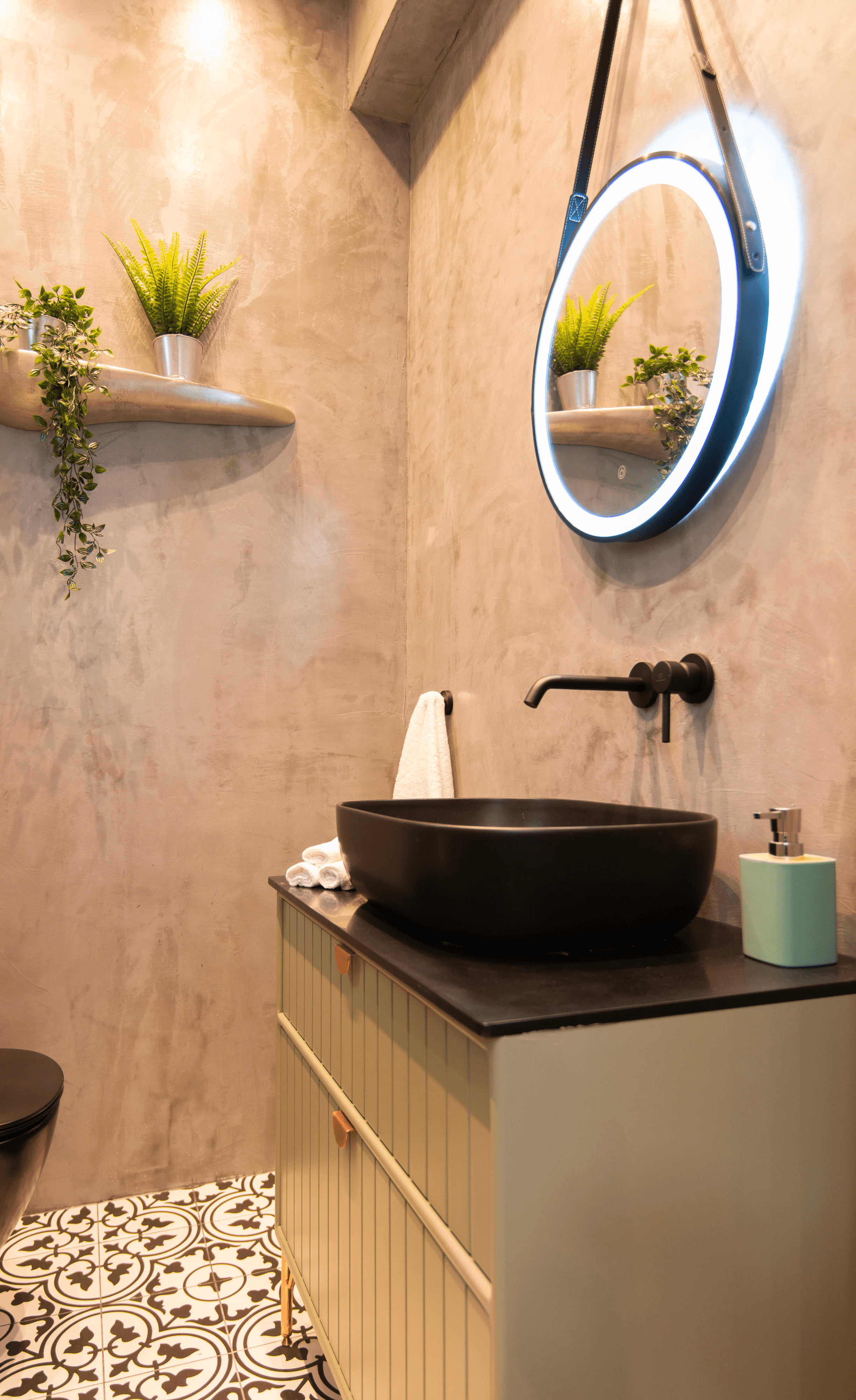Λεπτομέρειες για χρωματικούς συνδυασμούς, έπιπλα, φωτιστικά και τεχνικές διατάξεις.